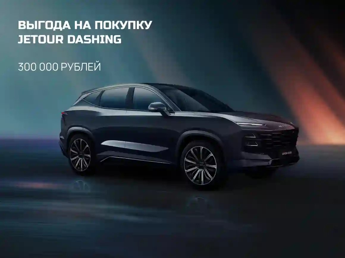 Вы можете приобрести автомобиль Jetour Dashing в любой комплектации с выгодой 300 тысяч рублей у официальных дилеров Jetour. Предложение суммируется со всеми кредитными программами банков-партнеров. Акция действует с 1 по 31 марта 2024 года. Подробности необходимо уточнять в отделе продаж выбранного дилерского центра.5